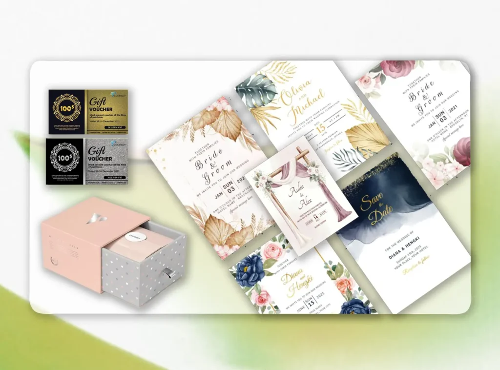 Elevate your celebrations with custom-designed invitation cards and curated gifts. We combine luxury materials with bespoke digital art to ensure your guests feel the prestige of your event from the first touch.