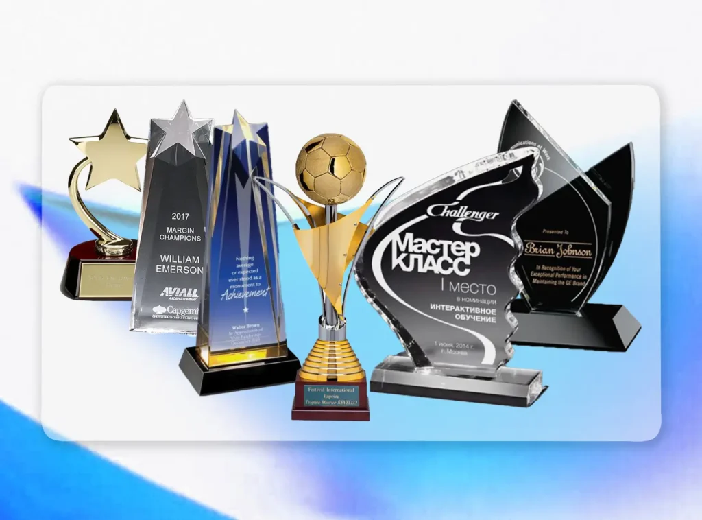 Excellence deserves to be immortalized in high-quality materials. We utilize a curated selection of optical crystals, high-density acrylics, polished wood, and premium metals. Each award is finished with precision engraving or digital printing to ensure the recipient feels the weight of their achievement.
